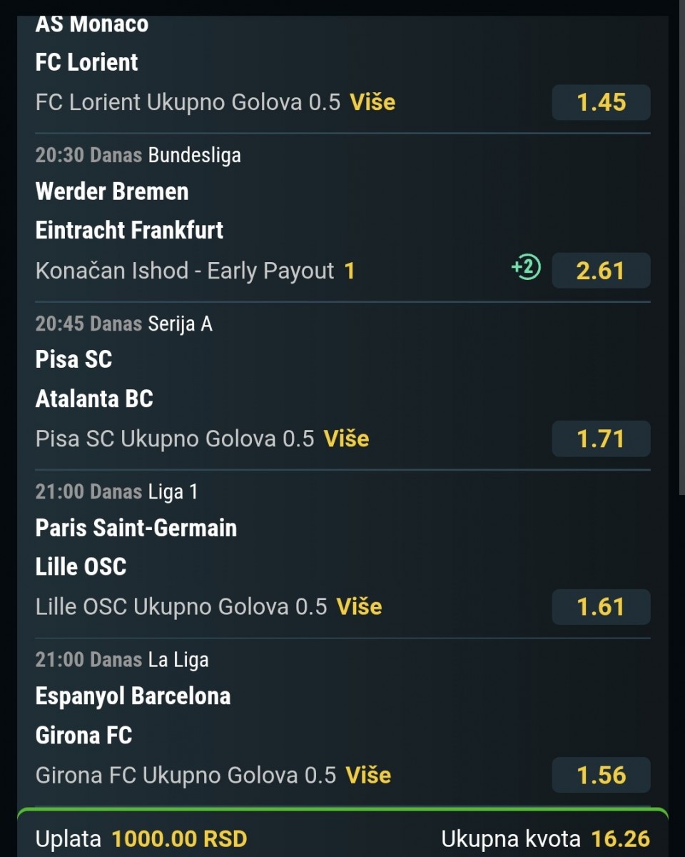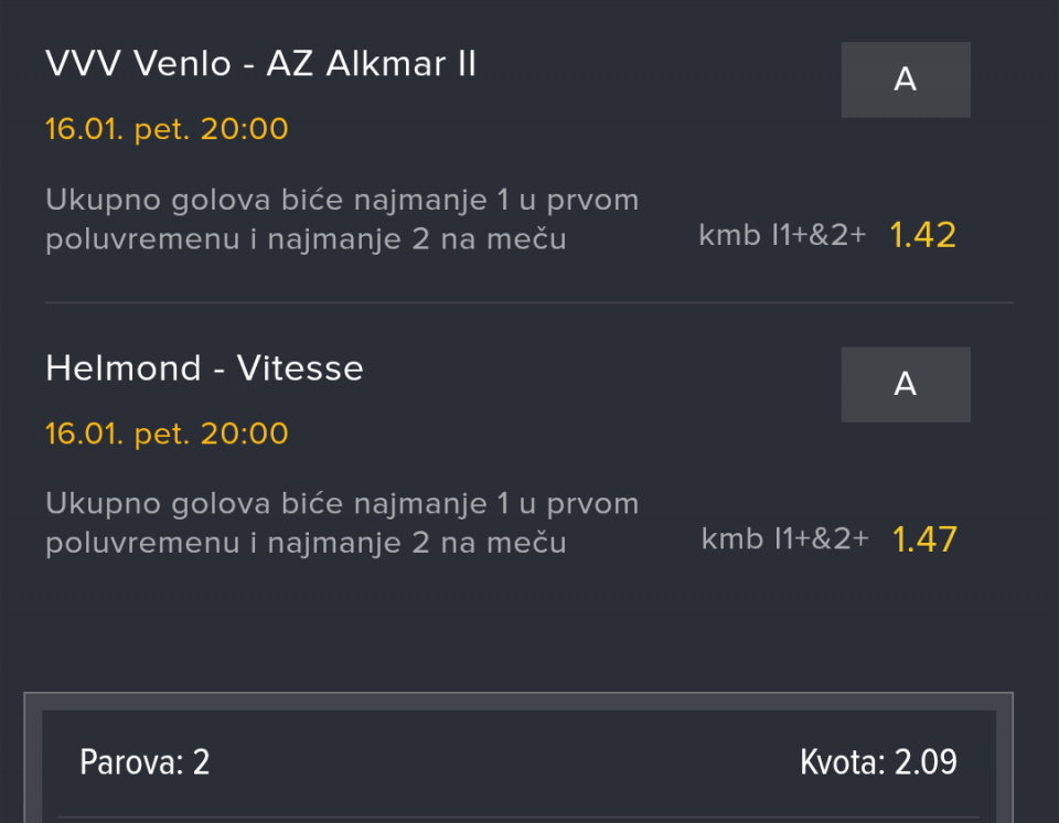 Da če biti u prvoj trečini postignutih najmanje dva pogodka!!