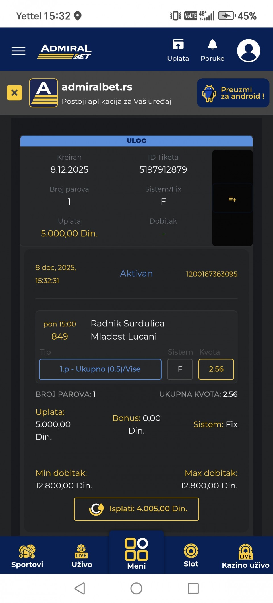 1 tiket svi mecevi za veceras, a drugi nesto nalik onome sinoc, iako je mala sansa da se nesto tako ponovi !