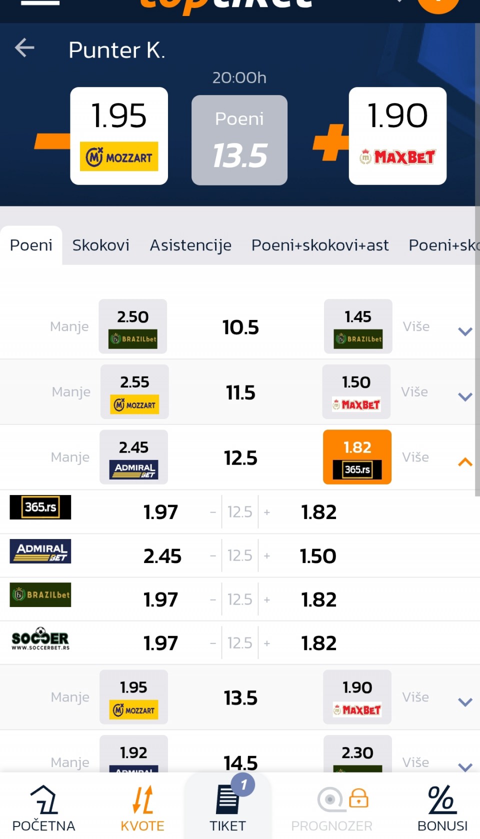 Od kad su promenili trenera deluje malo zivlje, a sigurno ce biti nalozen veceras. Plus na 12,5