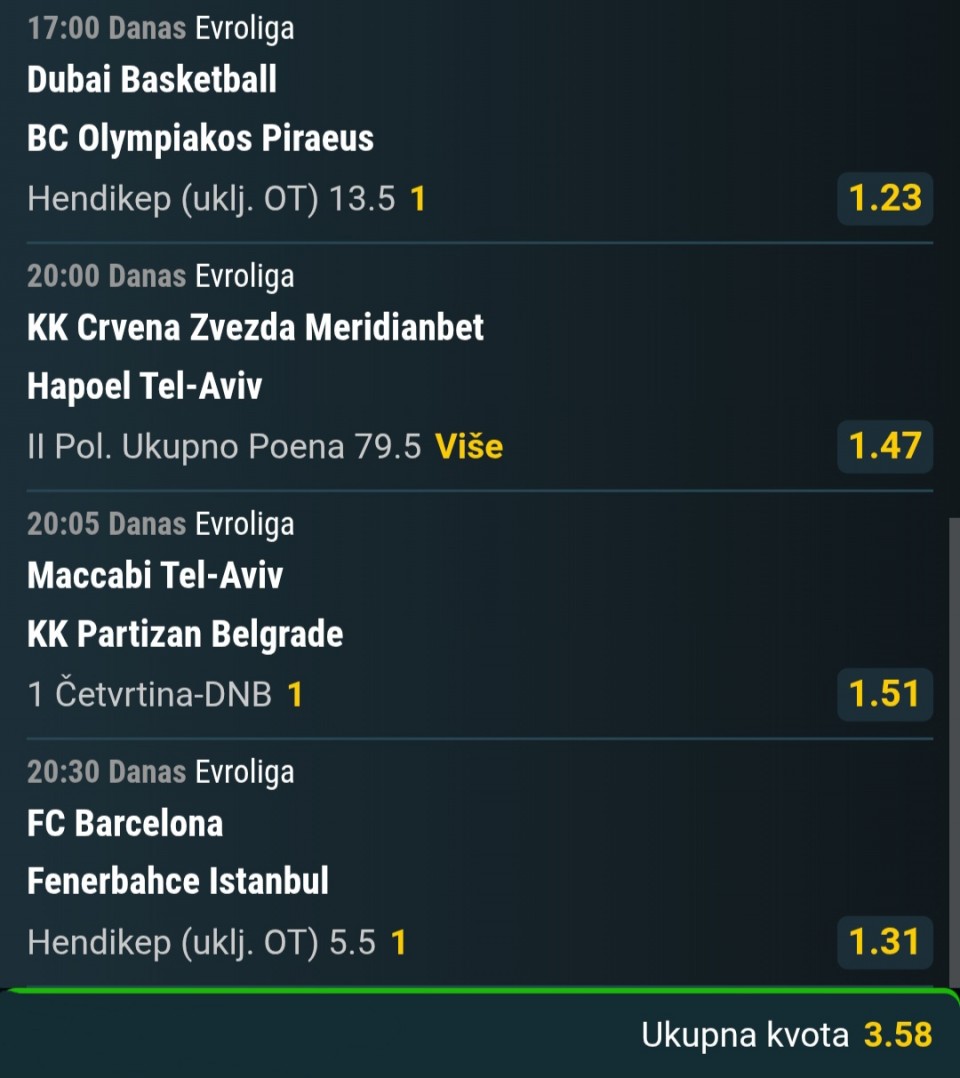1 utakmica 2-3 to smo naplatili pa da vidimo vcrs