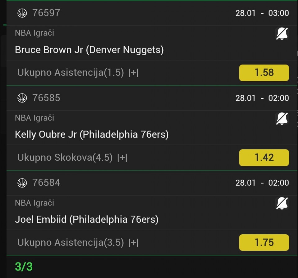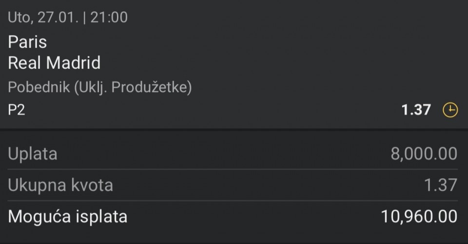 Ako neko ima u ponudi probajte 1 , ja sam probao u Volcano 2/1 na 16 kvotu ali nisam stigao da objavim jer sam kasno i uplatio. Ali nema uzivo u istu kladionicu,pokusavao sam da nadjem da uplatim jos na 1 uzivo ali ne mogu da nadjem. Kvota na...Ako neko ima u ponudi probajte 1 , ja sam probao u Volcano 2/1 na 16 kvotu ali nisam stigao da objavim jer sam kasno i uplatio. Ali nema uzivo u istu kladionicu,pokusavao sam da nadjem da uplatim jos na 1 uzivo ali ne mogu da nadjem. Kvota na Karlovac bila 1,50 a 4+ oko 1,60 , vredi probati Show more