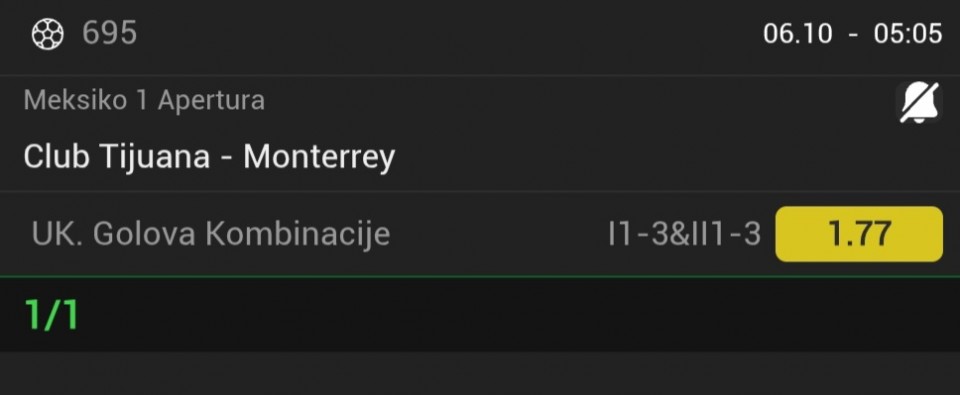 tip: 1 (78 minut trenutni rezultat 3:3)
