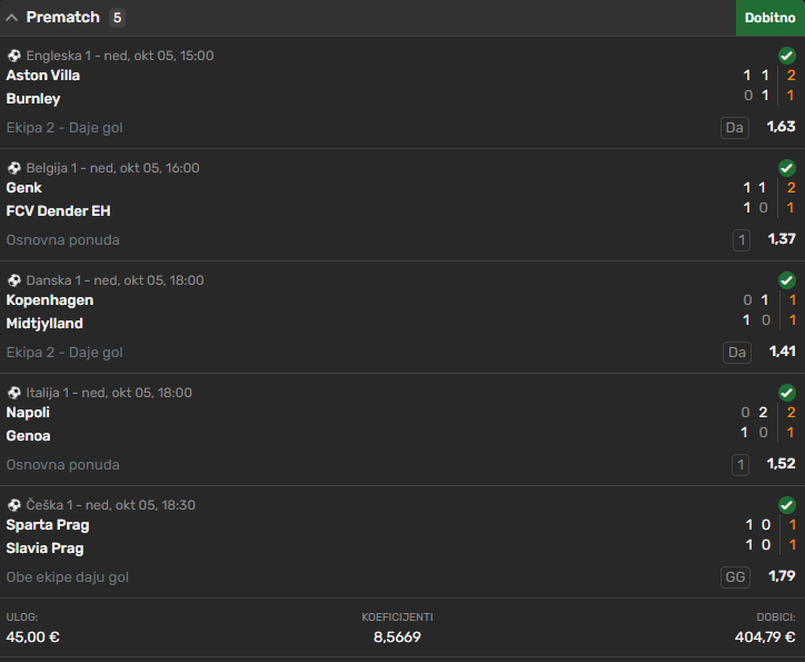 Nazalost desilo se ono sto sam i napisao , bas sam ubacio onu minu na tiket , Shakhtar ispušio od nekih automehaničara sa 4 gola u mreži , svi ostali...SINGLE