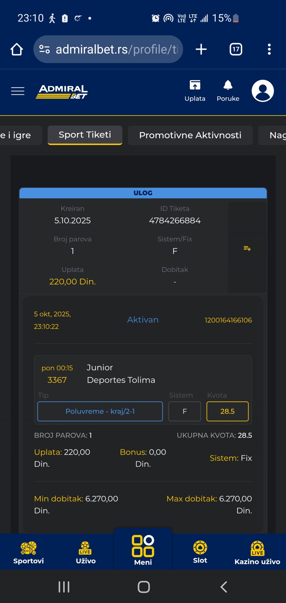 Nazalost desilo se ono sto sam i napisao , bas sam ubacio onu minu na tiket , Shakhtar ispušio od nekih automehaničara sa 4 gola u mreži , svi ostali parovi su prošli sto se tice favorita , ali nema veze idemo dalje , čak i sa padom napravljen profit danas od +1,1%.
