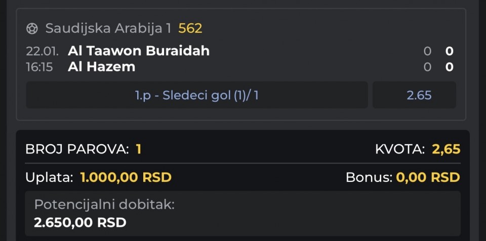 tip: over 1.5 (73 minut trenutni rezultat 0:1)...LIVE dubl