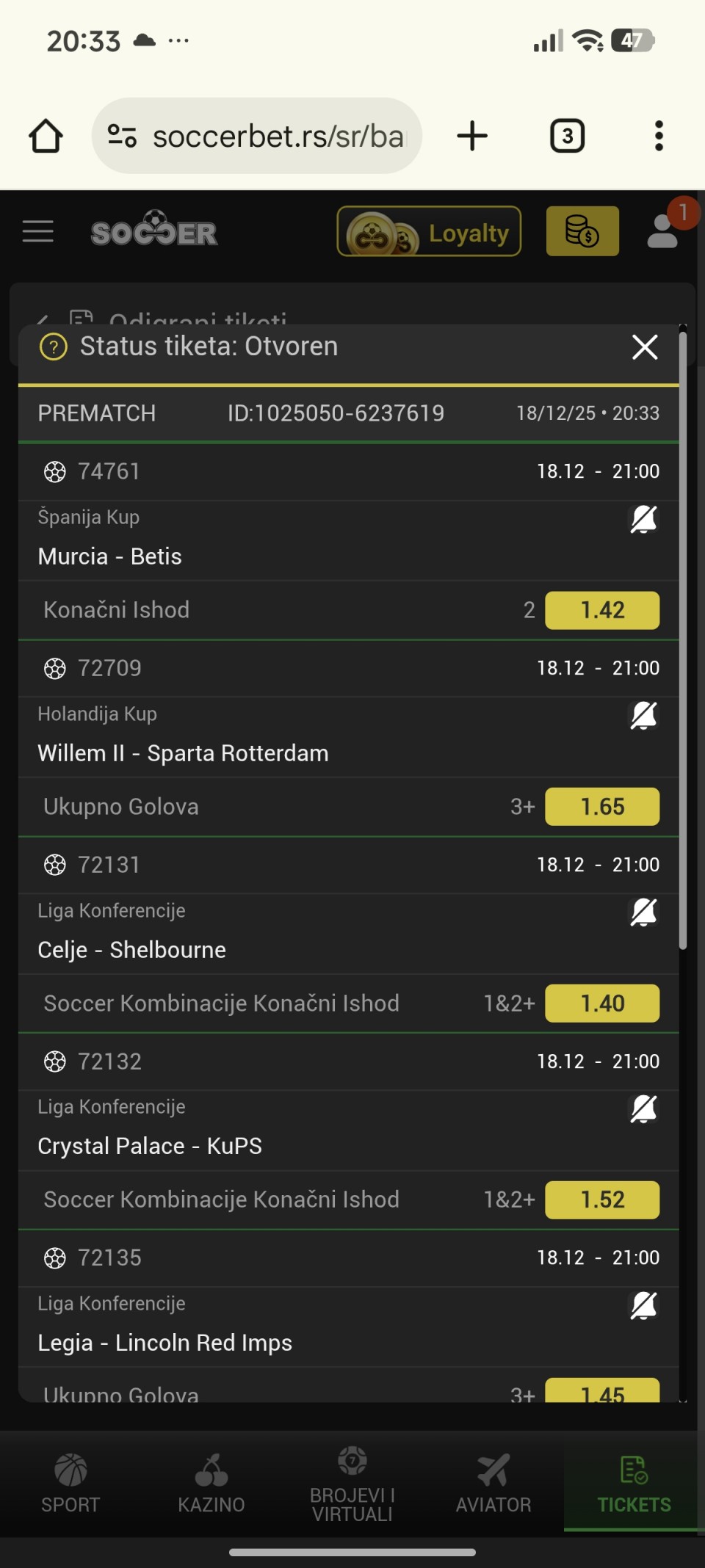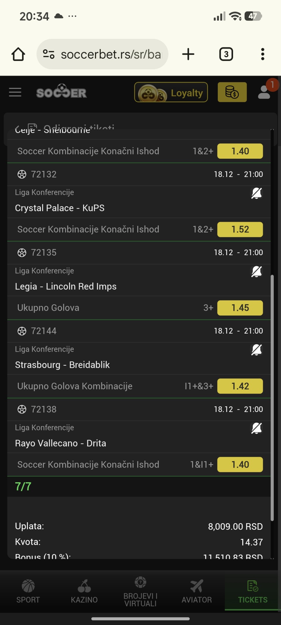 Bit će i za konferencijsku ligu oko pola 9 jedan tiket koji planiram da odigram.
