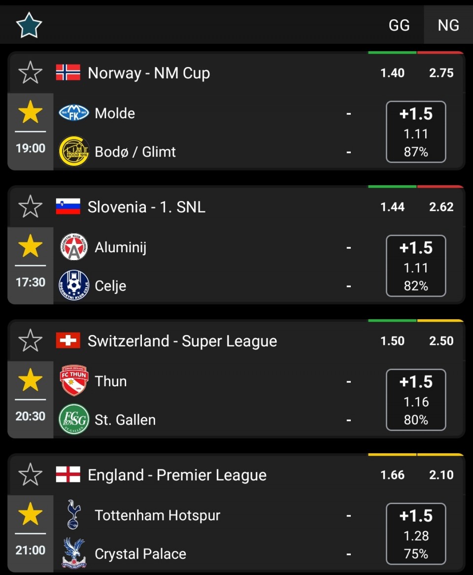 Dobro vece narode, sinoc polovičan ucinak dosta loše proslo, ukupan skor 19/32, evo pikova za veceras, srećno ko prati..