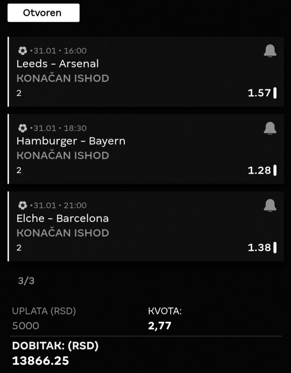 Због евентуалног пада квота одиграћу унапред два дана тако да ћемо овако:
