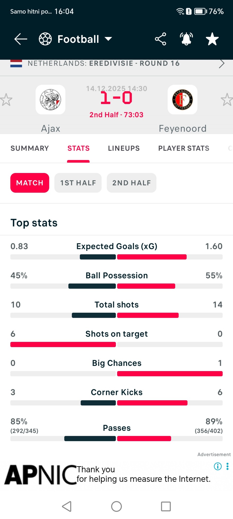 Vidim da dosta ljudi danas uplaćuje na Fener. Obično takve situacije znaju krenuti u kontra smjeru, pa možda vrijedi razmisliti o singlu - da gost postigne gol u prvom poluvremenu (3.40) ili barem na cijelom meču (1.80).