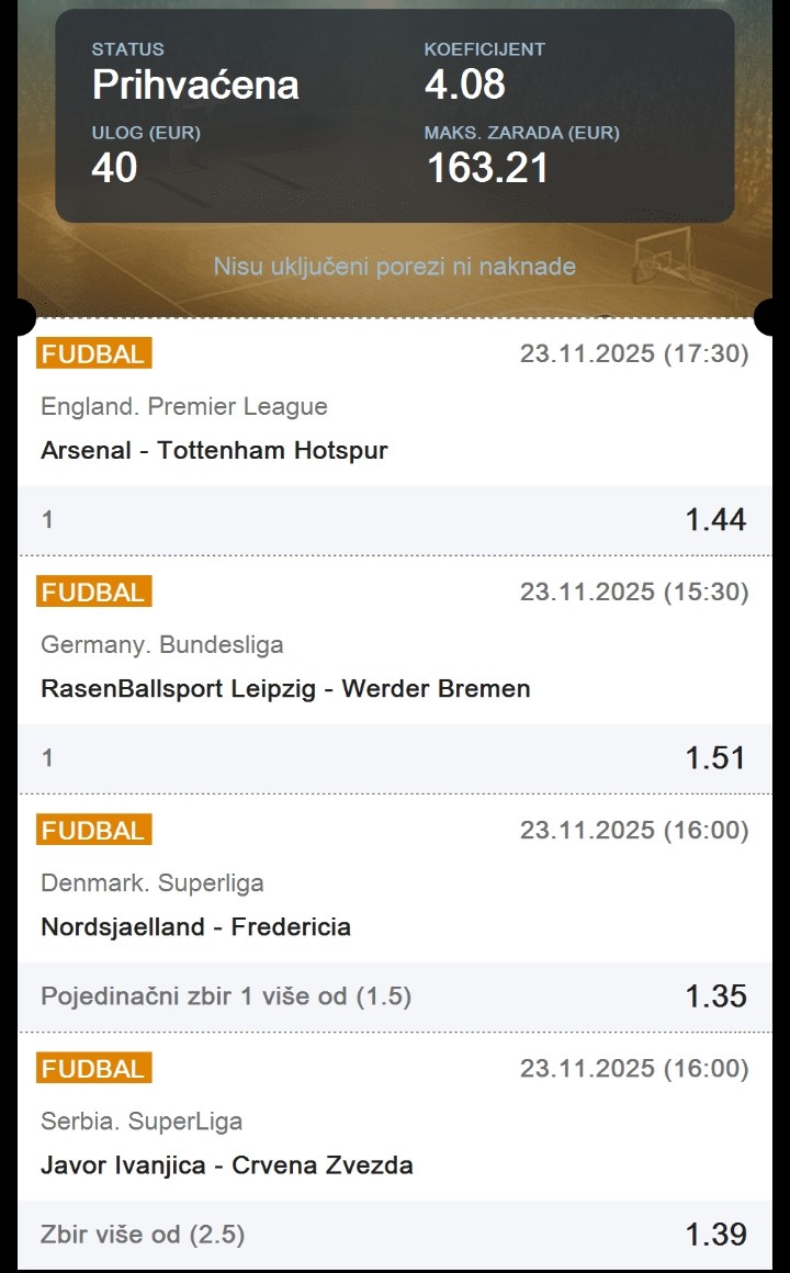 (19.11.) 𝚆𝚒𝚗 2.54 ☞ 6. 𝚔𝚘𝚛𝚊𝚔 ✅ 1...𝐣𝐨𝐬 𝟐 𝐰𝐢𝐧𝐚, 𝐩𝐚 𝐳𝐚𝐤𝐚𝐳𝐮𝐣𝐞𝐦𝐨 𝐤𝐚𝐣𝐦𝐚𝐤 💵 nadam se da ćemo završti brzo ovaj peti ciklus od 10 pogodaka, u nastavku večeri imate nba tiket i nba predlog singl, srećno