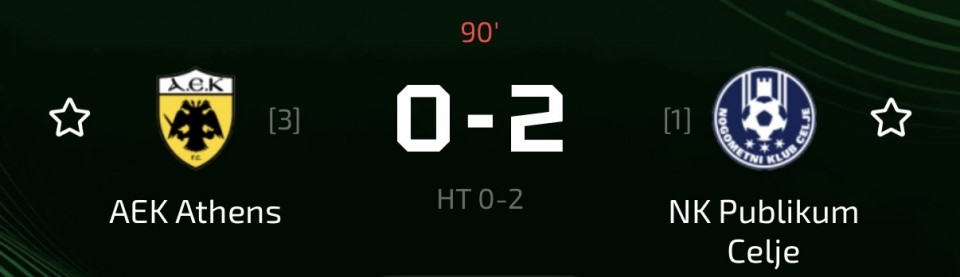 🇬🇷 18:45 AEK - Celje G1+ (1.87) #WIN ✅