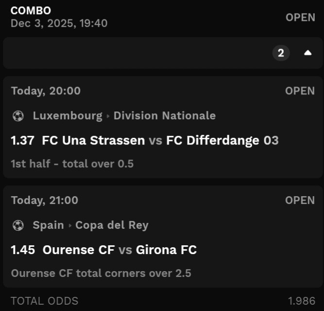Girona poslije uspjeha protiv Reala teske noge kup utakmica valjda domacin napravi 3...20.00 Una - Differdange 03 1pp 0,5+ golova Bilo ko.