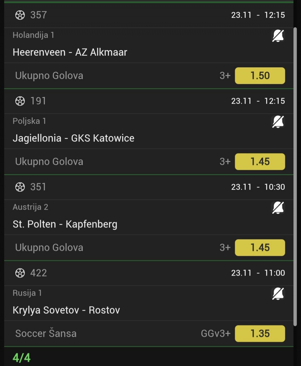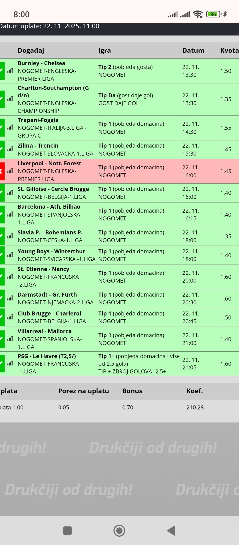 Novembar score 18/32, unit juce +21.28, ukupan unit +14.72