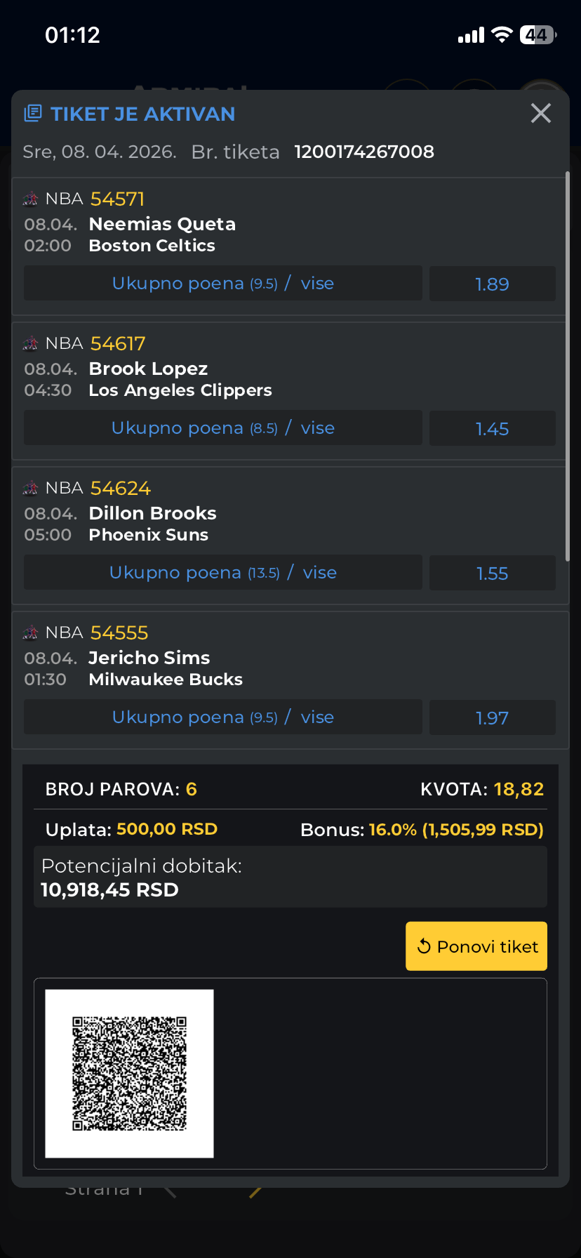 Queta igra u sjajnoj formi. Uživa igrati u ovakvom Bostonu rekao bih otkako se vratio Tatum. Dosta situacija gdje nakon prodora ili udvajanja dobija loptu na zicer tako da je vezao 4 OVERA preko granice 9.5, a...Queta 9.5+