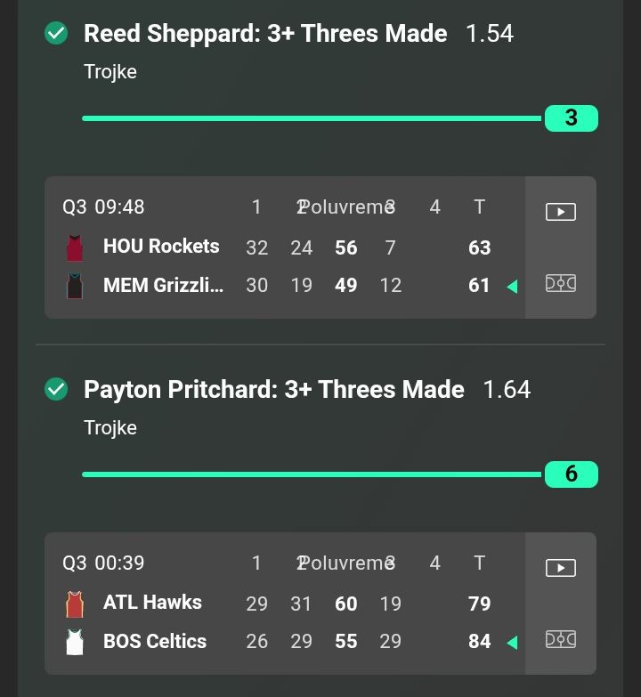 K.Slukas 10 poena ❌ (Naš tip 9.5,ima 2 poena i u trećoj četvrtini u 1.26 minuta daje zaredom osam poena i više ništa do kraja).