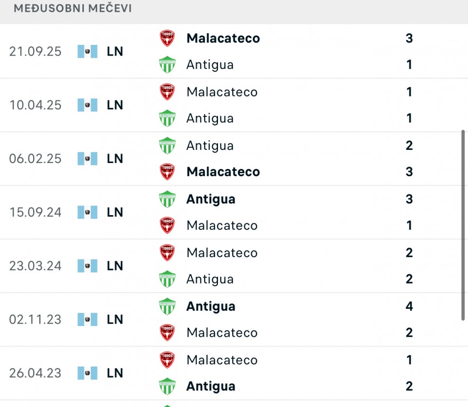 Malacateco je u seriji od pet pobjeda,a meðusobni dueli ove godine su završeni rezultatima 1:3, 1:1 i 2:3.