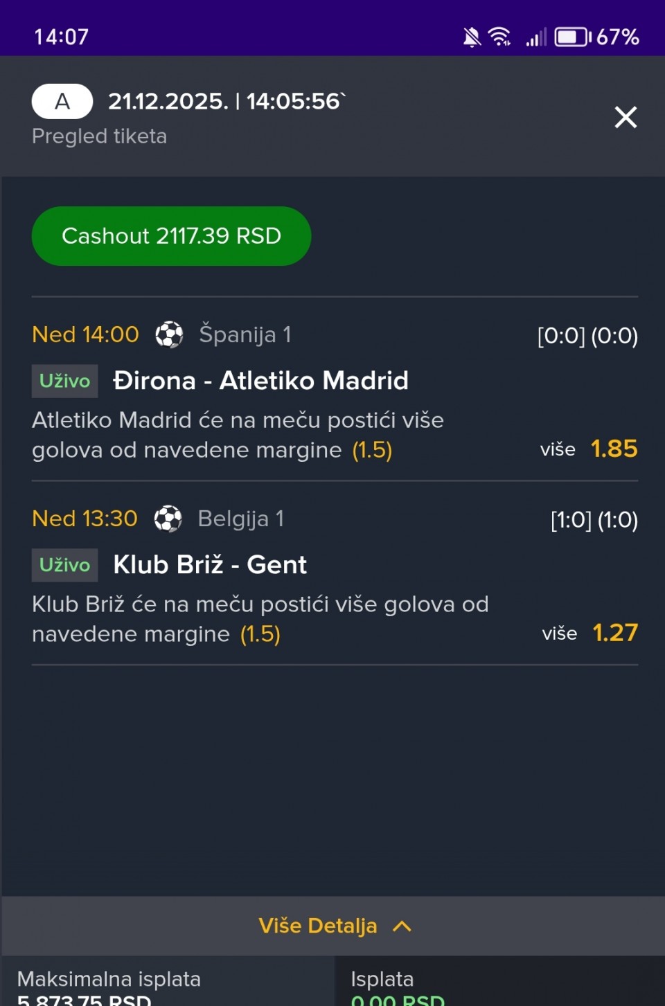 Juce krenulo dobro, onda englezi cabar, Sociedad bolje da ne komentarisem, Frosinone dosao u singlu, tako da i nine lose, a danas da probamo ovo. 🍀