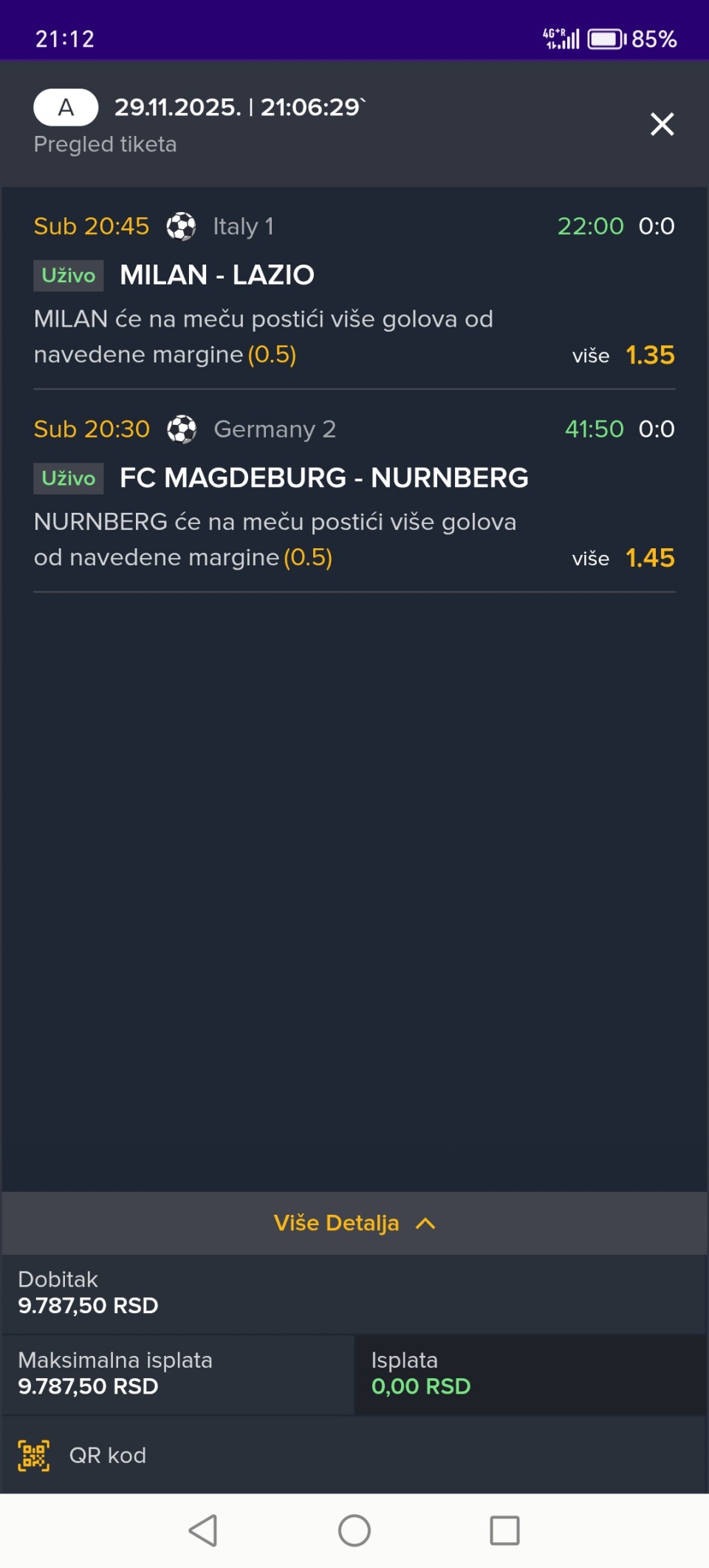 uuu ove najmanje kvote na tiketeu vole da me drze do 90+ za veceras sam nesto odigrao tiket u komentaru .. sretno ako neko prati