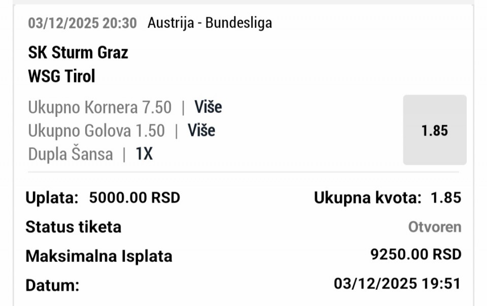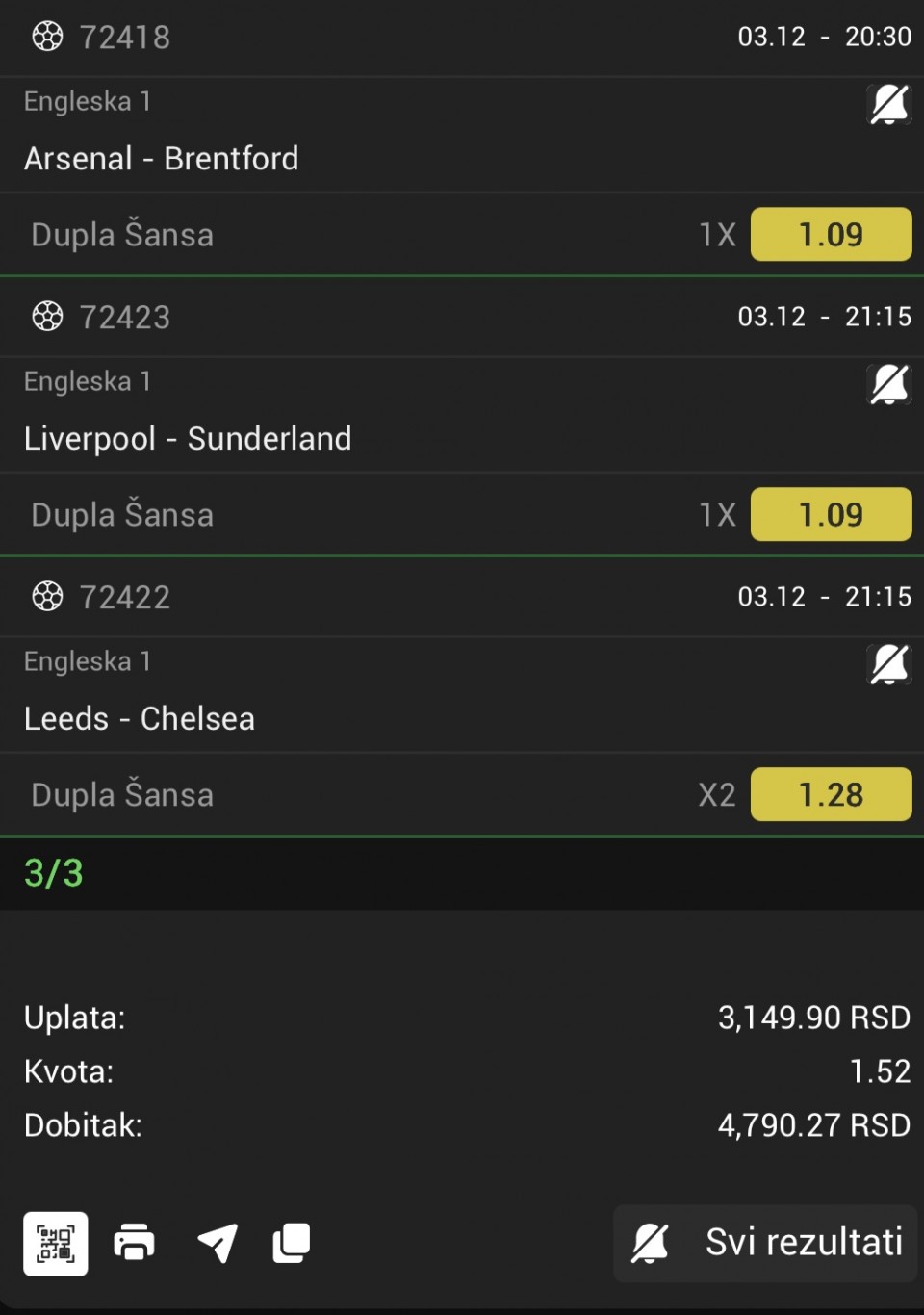 statistiku za predloge NE VODIM, bice u komentaru win ✅ pad ❌