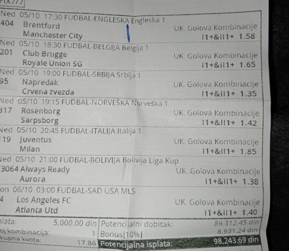 tip: 2 (poluvreme trenutni rezultat 2:1)