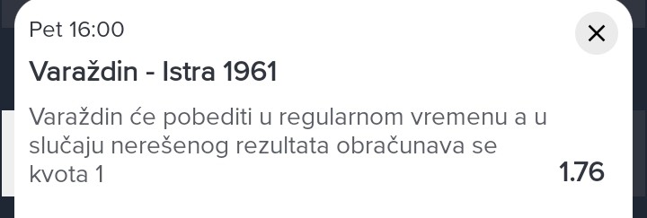 Pozdrav ljudi, hteo bih da podelim sa vama jednu strategiju za kladjenje. Dugo sam imao problema da pronadjem strategiju koja ce mi dugorocno donositi profit i konacno sam je pronasao. Vrlo je prosto, ulog je stalno 2k a kvota je minimum 2.50 sa...Pozdrav ljudi, hteo bih da podelim sa vama jednu strategiju za kladjenje. Dugo sam imao problema da pronadjem strategiju koja ce mi dugorocno donositi profit i konacno sam je pronasao. Vrlo je prosto, ulog je stalno 2k a kvota je minimum 2.50 sa tim da se tolerise i do 2.30 iz razloga sto ce u dosta slucajeva kvota biti veca od 2.50 pa ce se tu nadoknaditi profit. To moze biti singl, dubl, tripl sta god vam odgovara. Da biste bili u profitu treba da pogodite 40 od 100 tiketa. U poslednjih 100 pogodio sam 44 tiketa i ostvario profit od 31k. Nadam se da sam nekom dao ideju za dugorocno kladjenje. Pozdrav svima. Show more