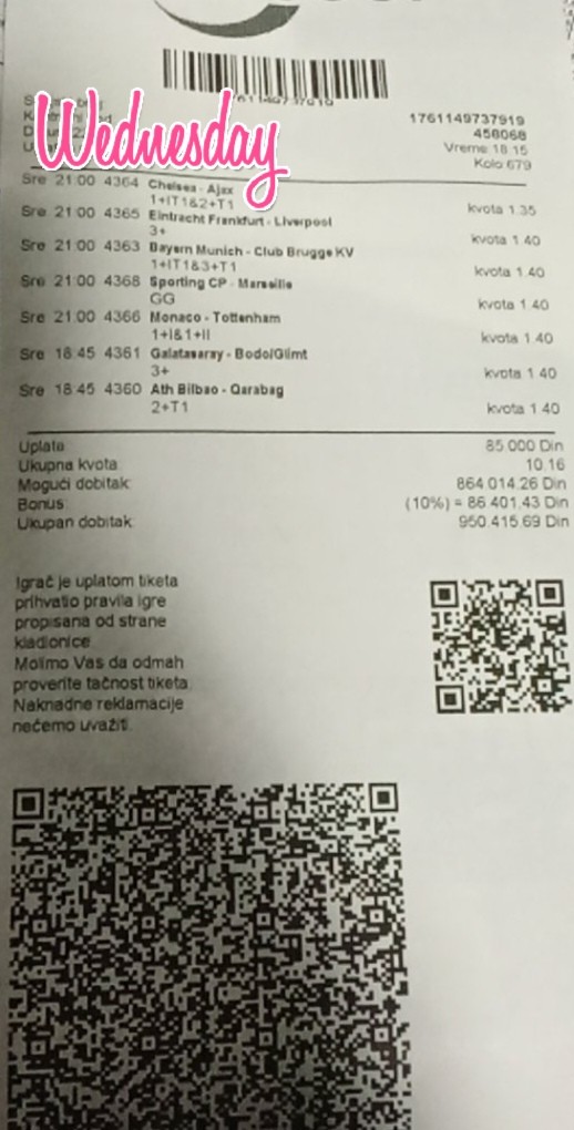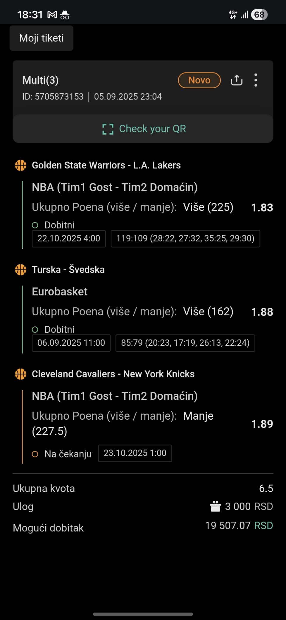 Drugari, treba mi pomoc oko ovoga ako neko zna uopste. King mi je dao 3000rsd za tiket. Slucajno sam odigrao pre 2 meseca ovaj NBA juce i veceras. I sad je samo ostalo ova jedna pa me zanima da li ako prodje imam 19k odnosno ceo dobitak ili sta...Drugari, treba mi pomoc oko ovoga ako neko zna uopste. King mi je dao 3000rsd za tiket. Slucajno sam odigrao pre 2 meseca ovaj NBA juce i veceras. I sad je samo ostalo ova jedna pa me zanima da li ako prodje imam 19k odnosno ceo dobitak ili sta kako? Zanima me jer bih branio pa ako je neko imao iskustva nek podeli. Hvala. Show more