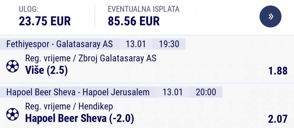 Danas igram ovo kvota je oko 6-7, nadam se prolazu sve su realne prognoze.