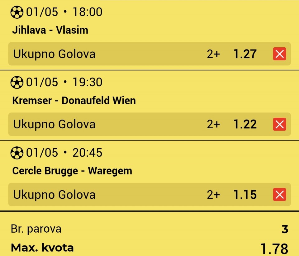 Rezime mog probnog rada odnosno probnog perioda igranja tiketa kvote 1.40 - 2.00, odigrao sam u proteklih devet dana devet tiketa, rezime je 6/9. Profit je tu, što je najbitnije, tako da nastavljam moju strategiju i dalje, jer se pokazala odlična...Rezime mog probnog rada odnosno probnog perioda igranja tiketa kvote 1.40 - 2.00, odigrao sam u proteklih devet dana devet tiketa, rezime je 6/9. Profit je tu, što je najbitnije, tako da nastavljam moju strategiju i dalje, jer se pokazala odlična za profit, nema live klađenja, samo ovakvi tiketi, i konačno da imam profit od klađenja.