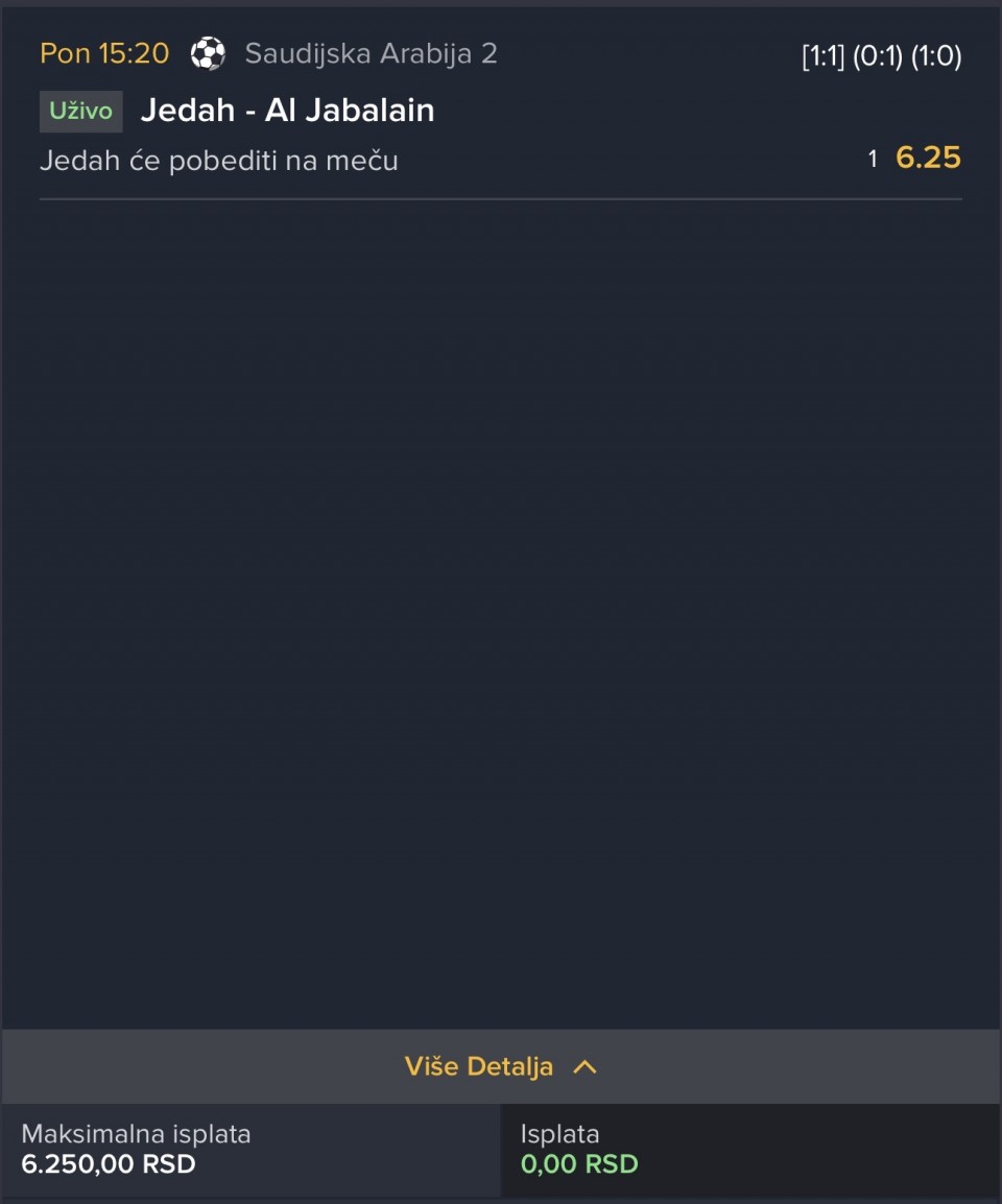 Mišljenja? Velika mi nešto kvota na Fener obzirom da jure Galatu koja im je pobegla na +6, pa su pod moranjem da dobiju. Takođe, poslednje kolo remi kući 1:1 sa Goztepe + dobar međusobni skor protiv Kocaelija...Kocaelispor : Fenerbahče 2, p/k2, t22+