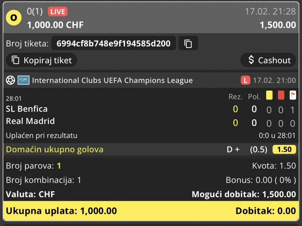 Benfica - Real ft X u glavu, nema nista od ove utakmice, sve ce se resavati u drugoj...