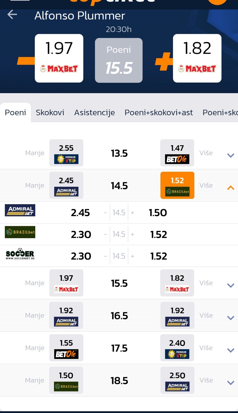 Stvarno ne znam zasto mu granica nije podignuta zadnjih mjesec dana. U 90% meceva prelazi ovu granicu bez problema i proslu utakmicu protiv Houstona je odigrao top (27 poena).
