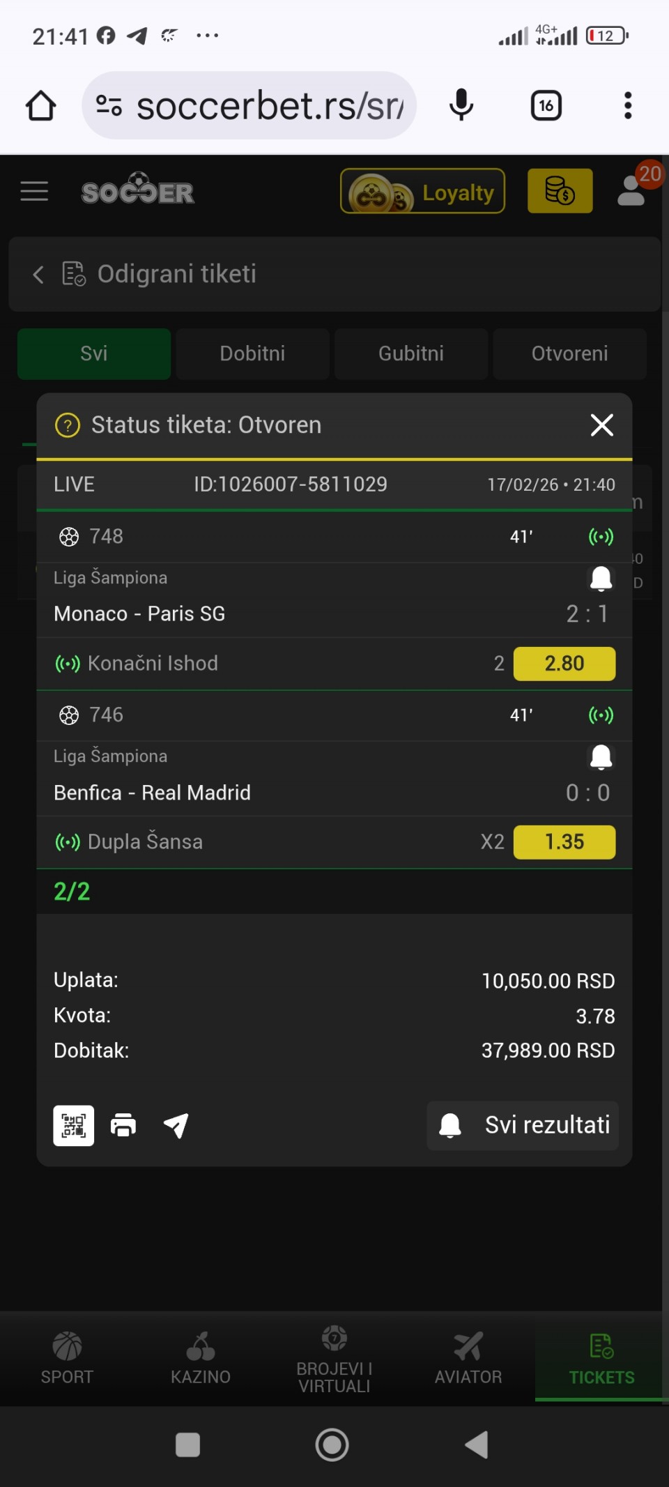 16.02. 💸 #Win 2.36 → (2. korak)