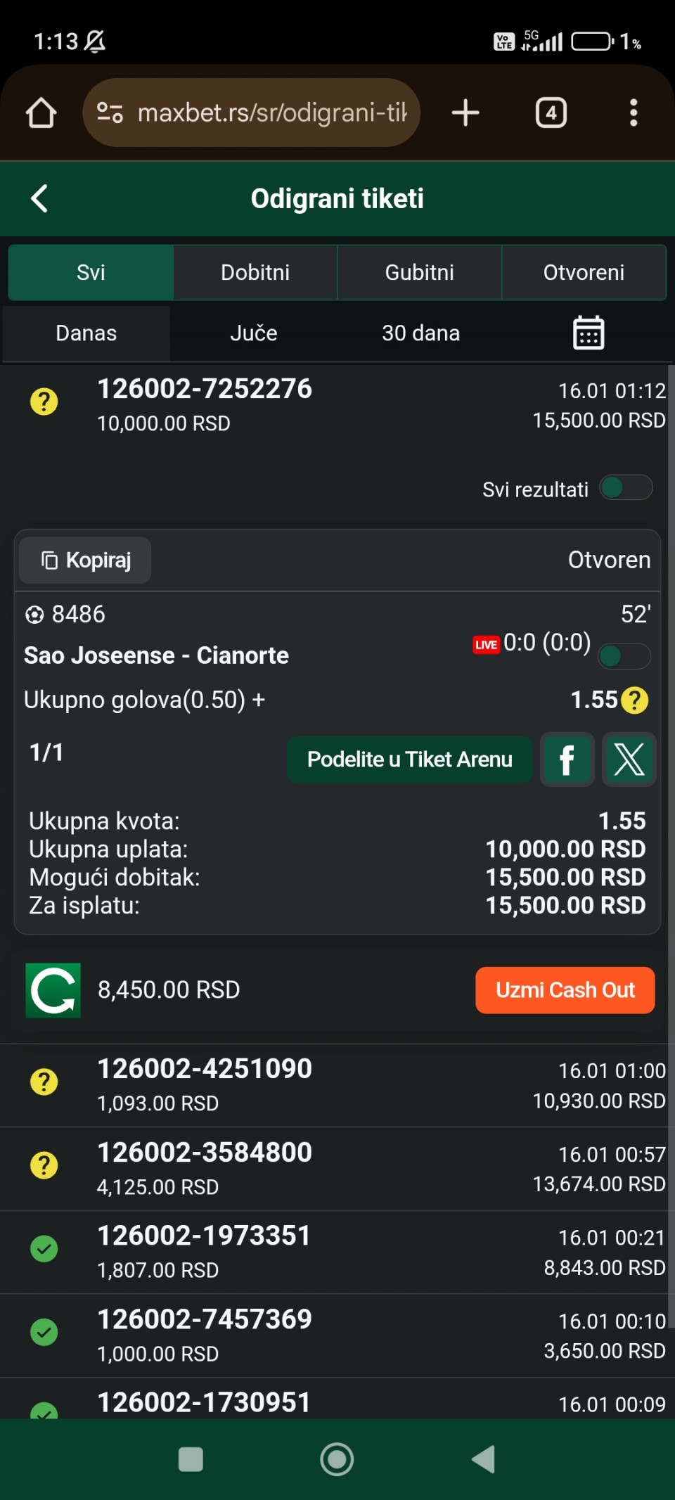 ukupna kvota: 1.82