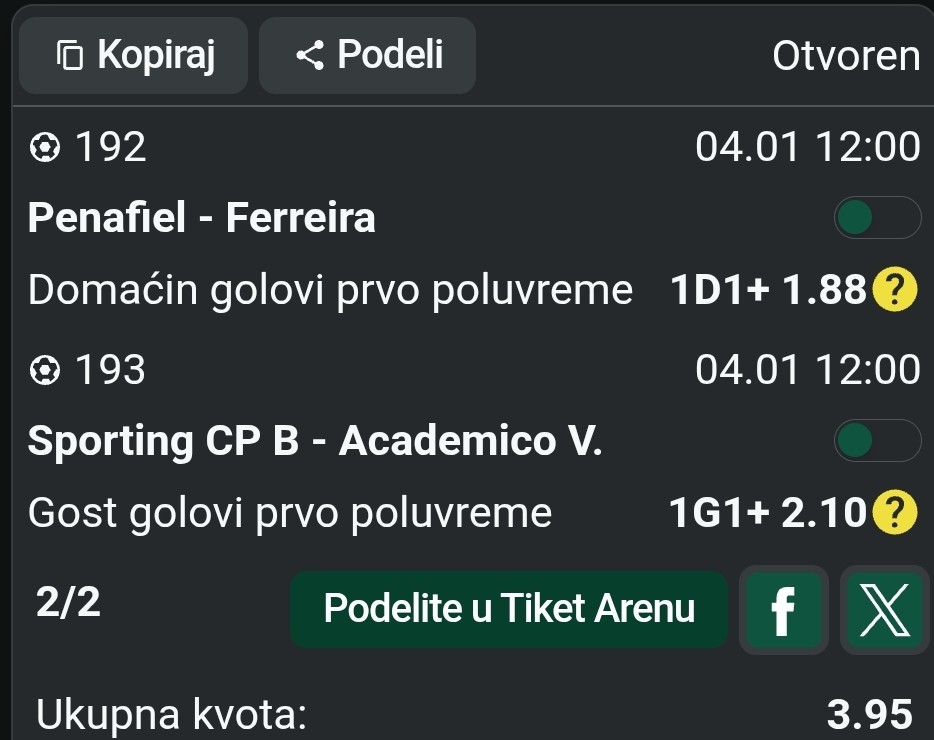 tip: over 2.5 (66 minut trenutni rezultat 2:0)