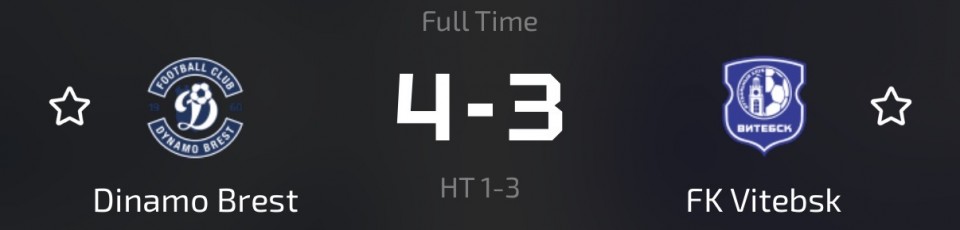 Dynamo Brest vs Vitebsk 5+ @6.30 win ✅