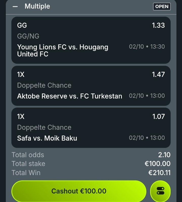 Safa Sefa kako god azerbeijdzanci prve 3 utakmice imaju 3 pobjede i nisu primili gol da ce danas izgubit od Loseg Moik Baku Bio bi sok. Singapurci Oba tima daju gol isto tako jer velike su sanse Lionsi primaju i daju golove dok...Triple Tiket Duplanje