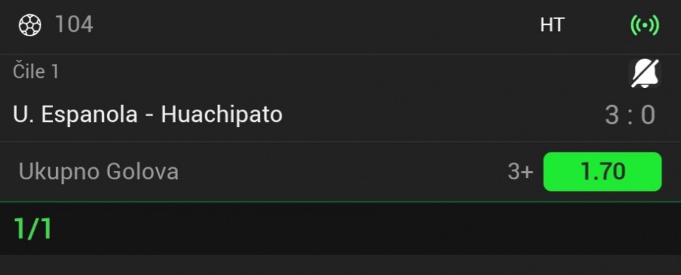 🇵🇪 Melgar - Alianza G1+ (1.75), probaću i prelaze na manji ulog, imala je Alianza jedan skoro, 2-1 (23.00), 1-2 (85.00)