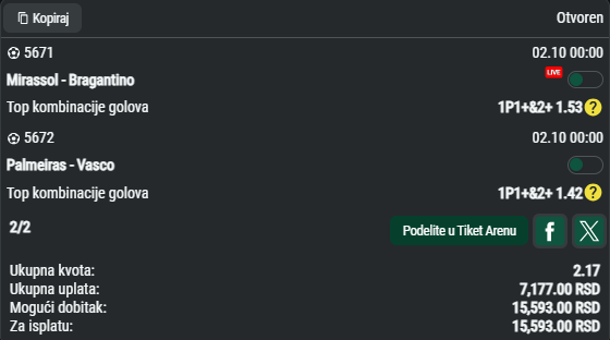 Hvala lepo, evo dokaza da ne bude prazna priča. Krivo mi je što imam par jačih tiketa i nisam mogao više ovde da uložim a bio sam uveren u prolaz, ali sve je to deo igre.