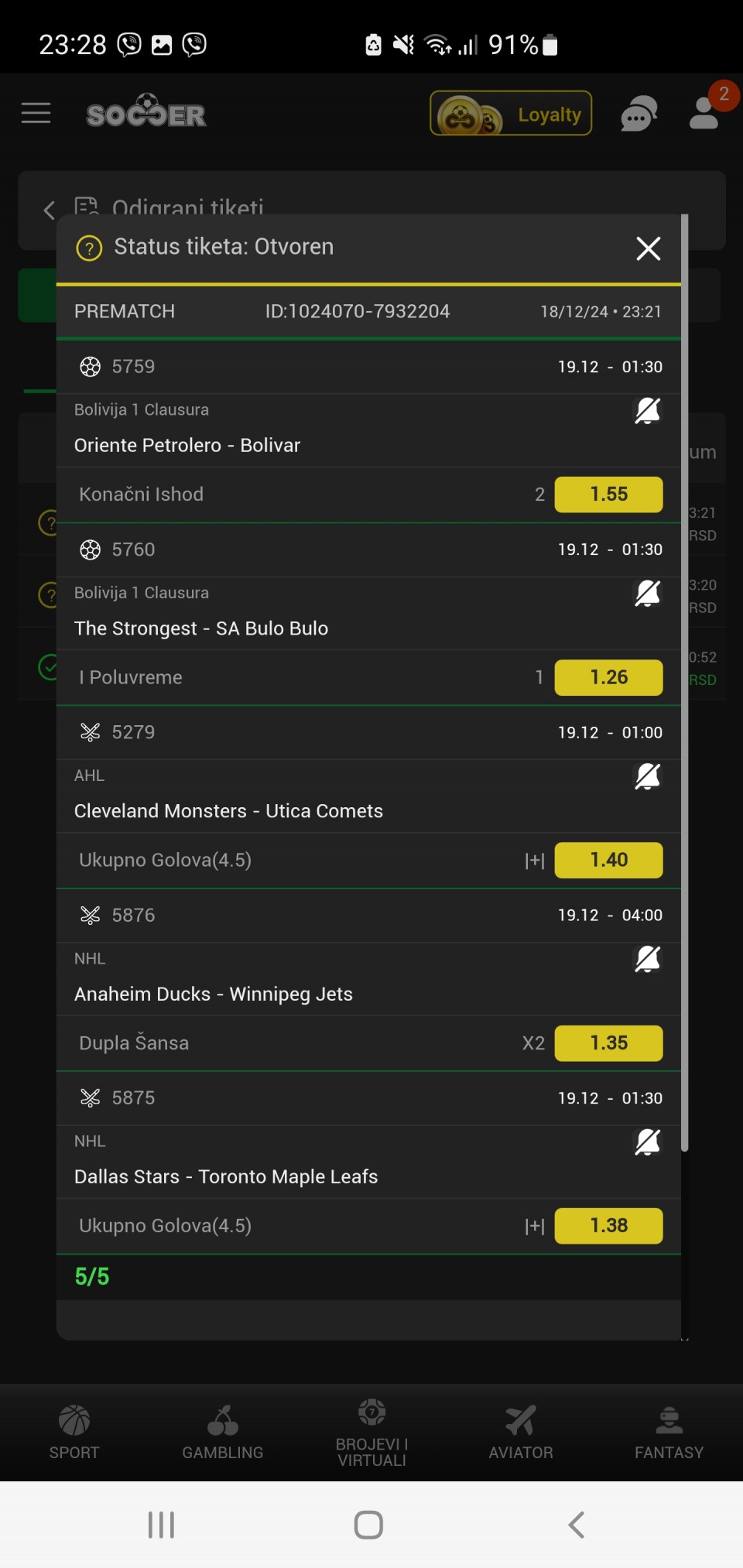 Prelomio sam ga uz kaficu osetio sam ovo i iskren da budem pokajao bi se ako bi izaslo sem sto mi je prvi fix bila zvezda x2 ali drugar je uspeo da me ibedi da za 2+ elem i 2+ nije lose ostala imam jos 2 tiketa ali njih cu u komentar to sam...Prelomio sam ga uz kaficu osetio sam ovo i iskren da budem pokajao bi se ako bi izaslo sem sto mi je prvi fix bila zvezda x2 ali drugar je uspeo da me ibedi da za 2+ elem i 2+ nije lose ostala imam jos 2 tiketa ali njih cu u komentar to sam raspodelio kusur... Show more