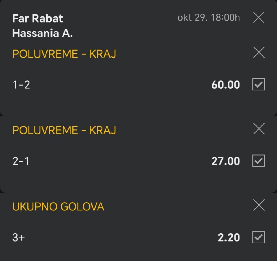ko moze i ovaj drugi mec da proba. Ja nemam gde da uplatim. Srecno ko prati.