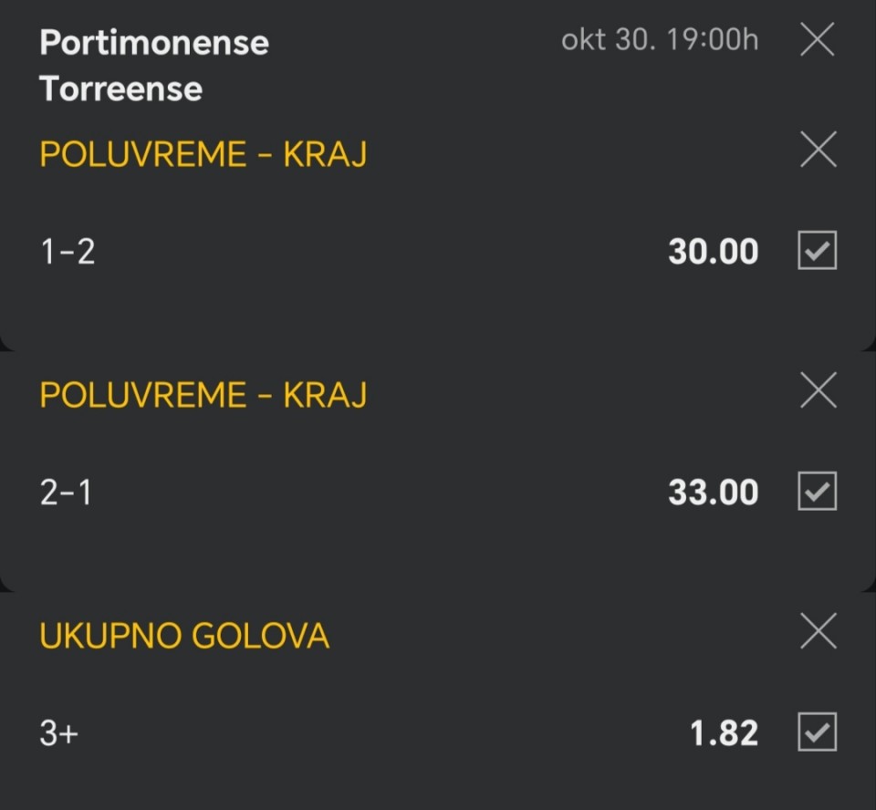 Poslednji tip za danas. 3+ 1,82 mi je prva opcija.Moj omiljeni klub iz Portugala Portimonense. U ovih 9 kola Torense ima cak 3 prelaza i to 2 za redom u proslom i pretproslom kolu. Portimonense ima samo 1 prelaz do sad. Prosle sezone oba meca dobio...Poslednji tip za danas. 3+ 1,82 mi je prva opcija.Moj omiljeni klub iz Portugala Portimonense. U ovih 9 kola Torense ima cak 3 prelaza i to 2 za redom u proslom i pretproslom kolu. Portimonense ima samo 1 prelaz do sad. Prosle sezone oba meca dobio je Torense i oba su dosla 3+,pa verujem da i ovaj mec ide u tom smeru.. Show more