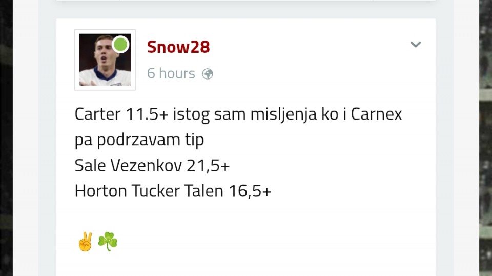 Jantunen 8,5+ Paris igra bez M.Lo, vecinom bez njega ide preko, uzece svoj deo suteva sigurno.