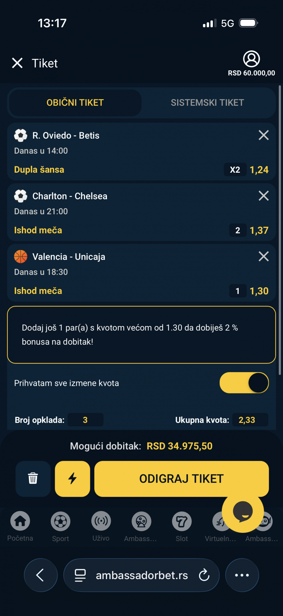 Kvota 23.65 Ulog 1000