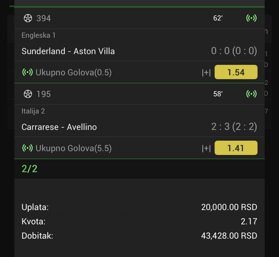 Ovo se i ja razmisljam da stavim na jaku uplatu juce ceo dan al se bojim da ce da kiksne neko od njih