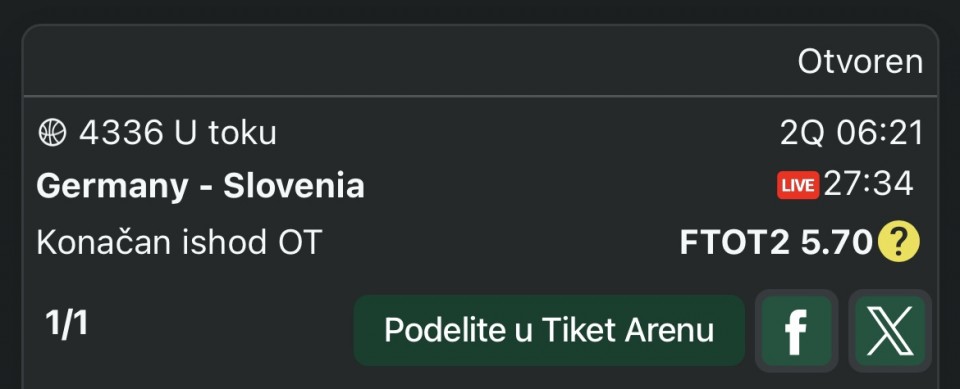 Pozdrav dobri ljudi, evo ga tiket za danas:
