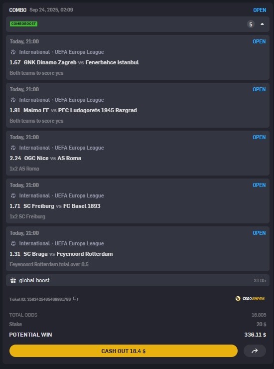 Dinamo Zagreb vs Fenerbahce - GG 1.67 kvota