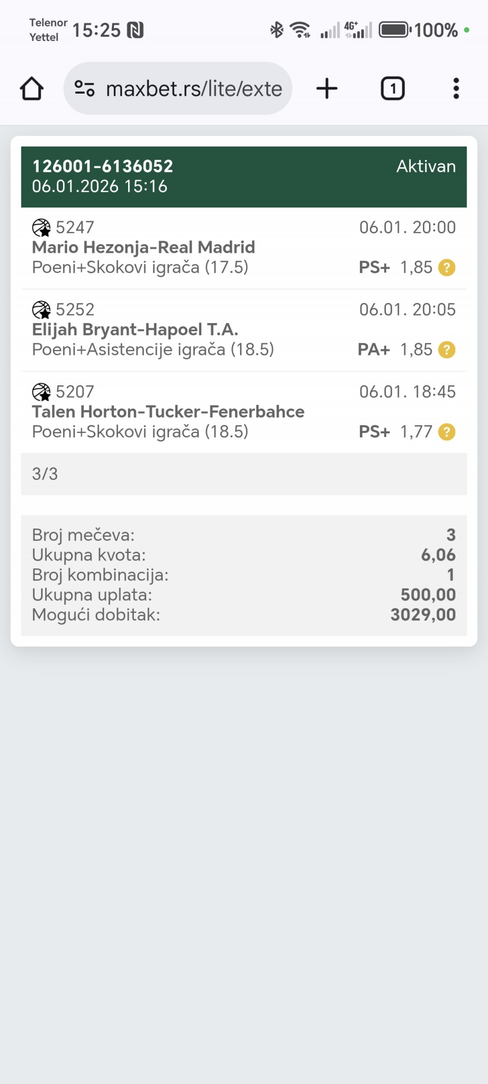 | Teletovic33 (2) | (51/78) | 65.38% | 109.60 | |