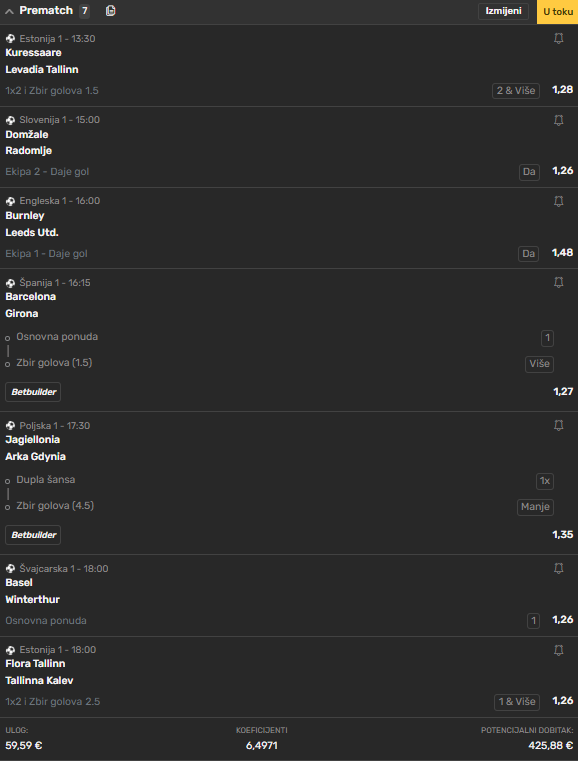 Tesko je ostati ravnodusan na ovakav tiket za 850e. Trener Levadie drzi najbolje igrace na klupi do 70-80 minuta a u igri su za titulu Estonije. Nekad mi neke stvari stvarno nisu jasne.