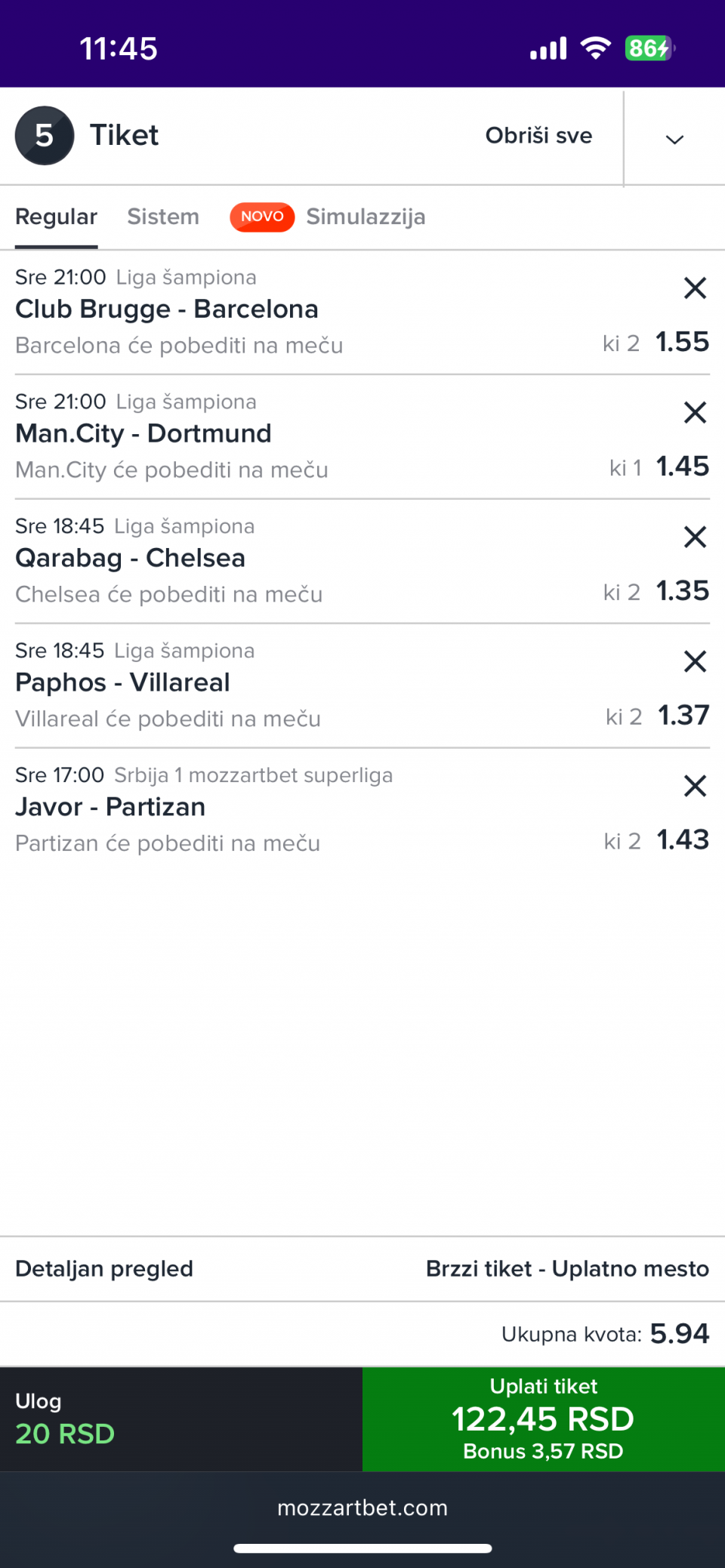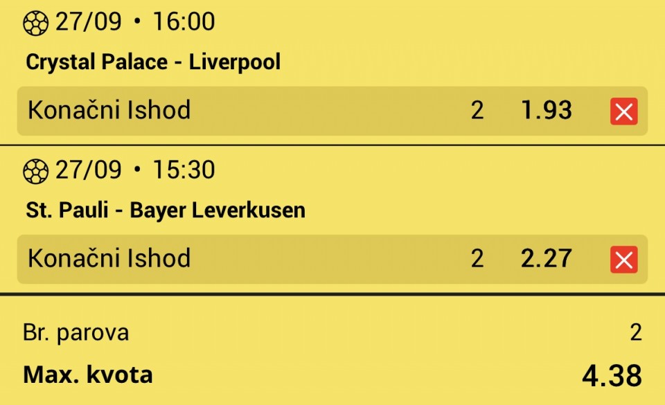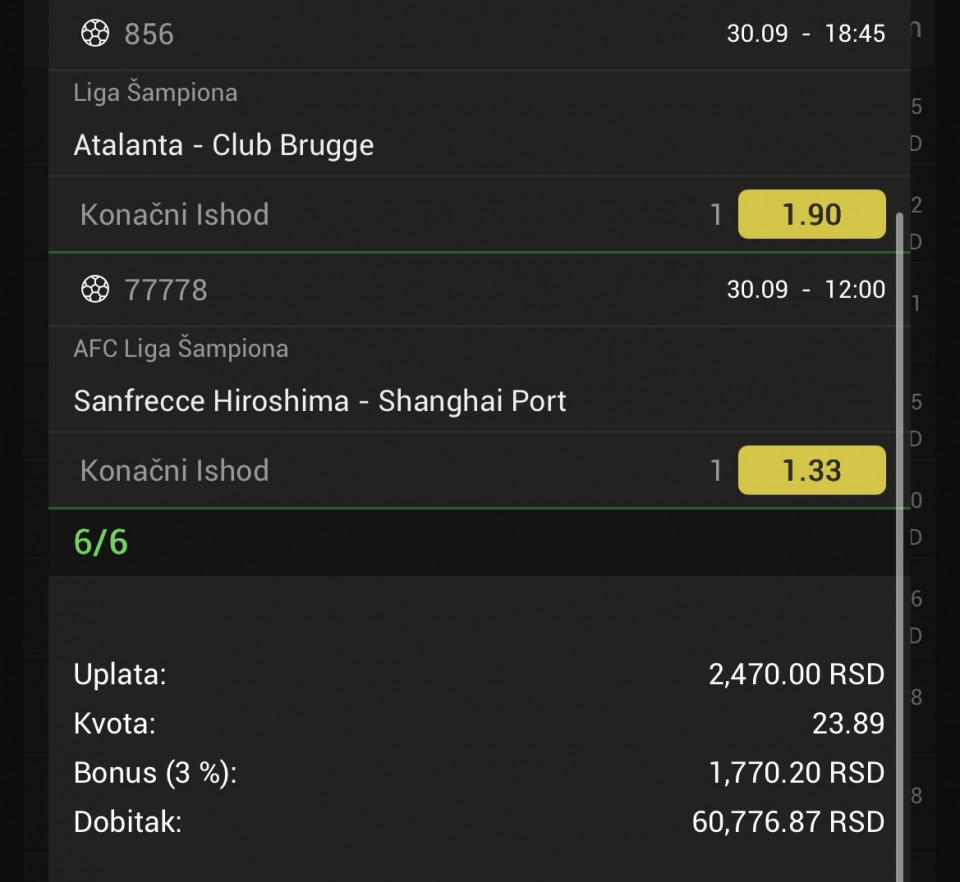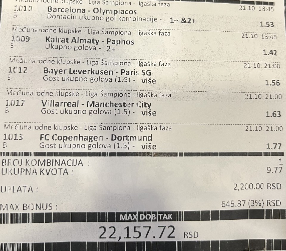 Ovo cu sutra odigrati,jer mislim da vise ne vredi bacati pare na male kvote i takozvane favorite, bolje manje para na vece kvote pa sta bude bude, pre ovako dodje nego 1,20, 1,30...