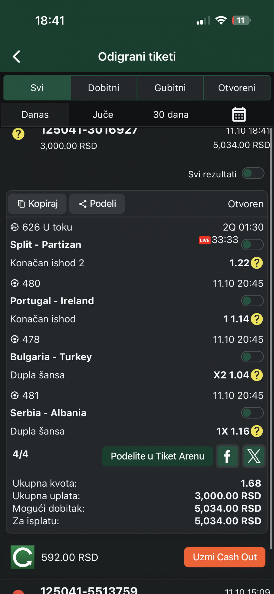 Dal je neko igrao tikete za danas sa ulogom preko 50e?